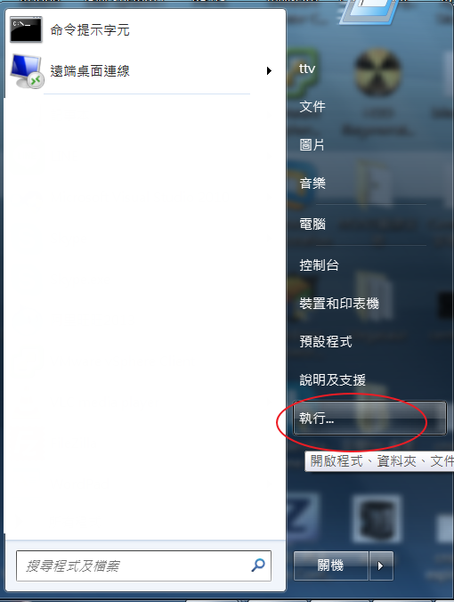 在Windows XP 的開始畫面,我們可以直接點擊”執行”然後輸入我們要執行的程式,程式就可以直接執行,但是在Windows 7 的系統上,該功能沒有顯示出來,相對的有個搜尋的欄位,讓我們搜尋程式或檔案.現在告訴大家要如何的將”執行”的功能於Windows 7 的作業系統顯示